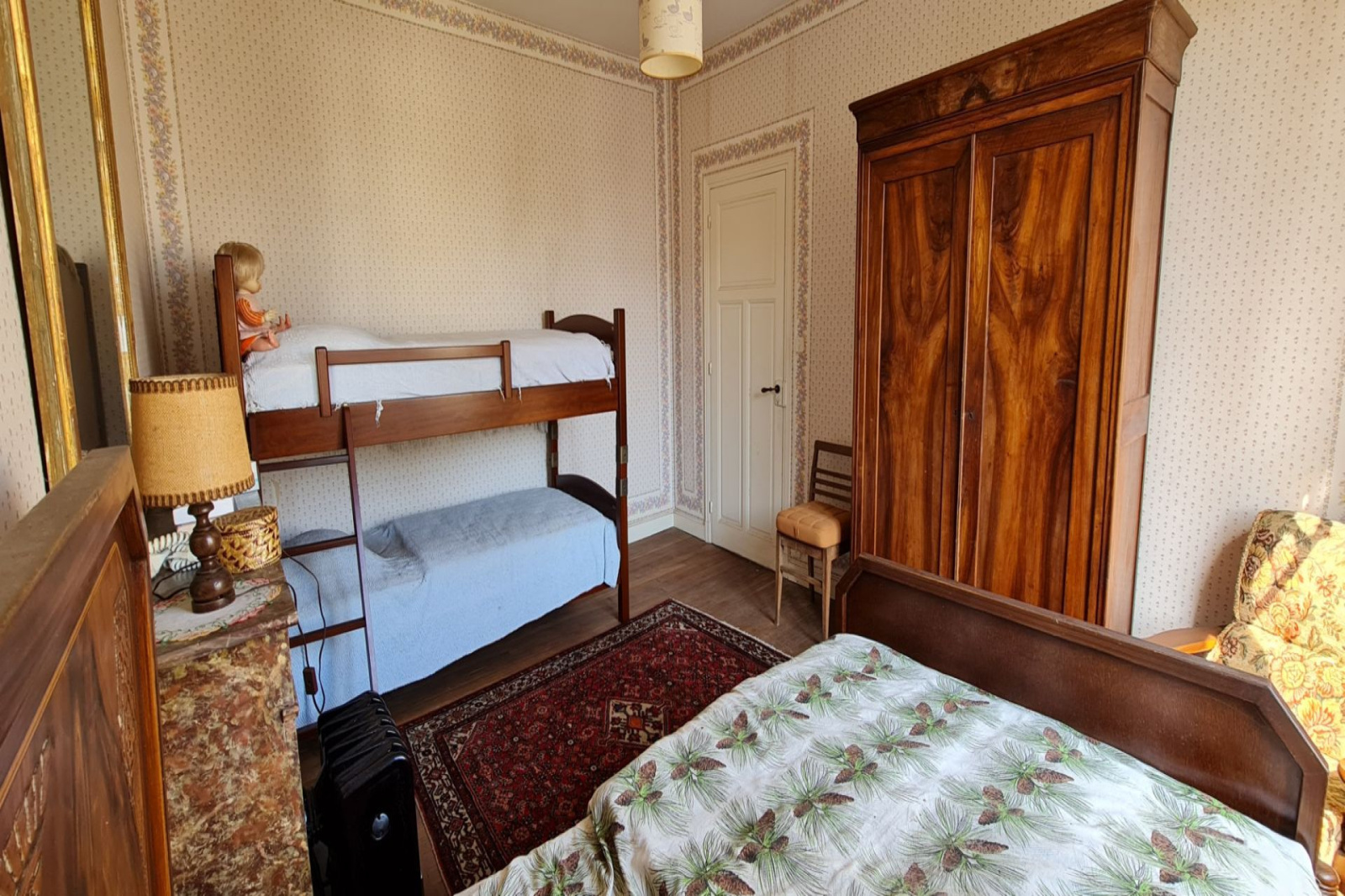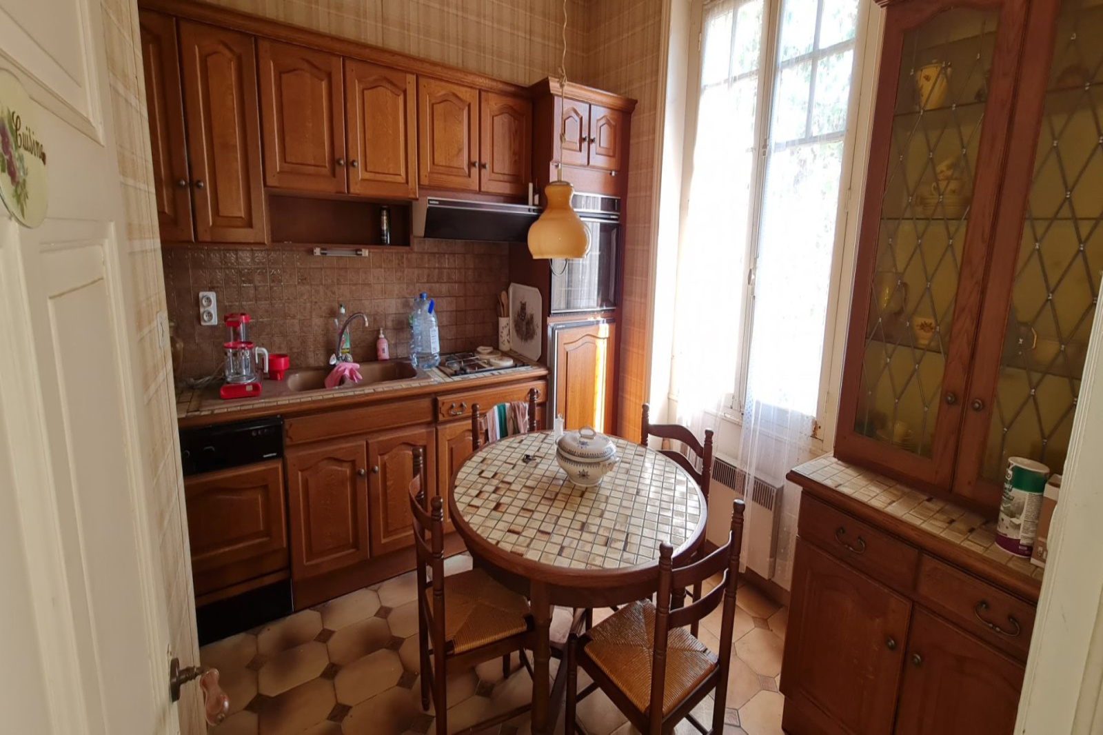 Toutes les huisseries sont en bois simple vitrage et le système de chauffage est à gaz avec radiateur en fonte.