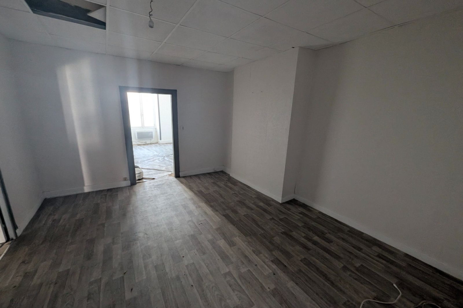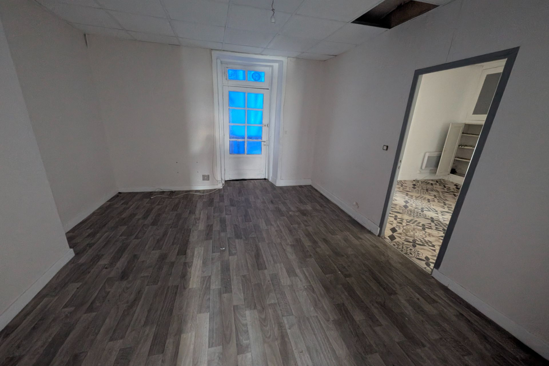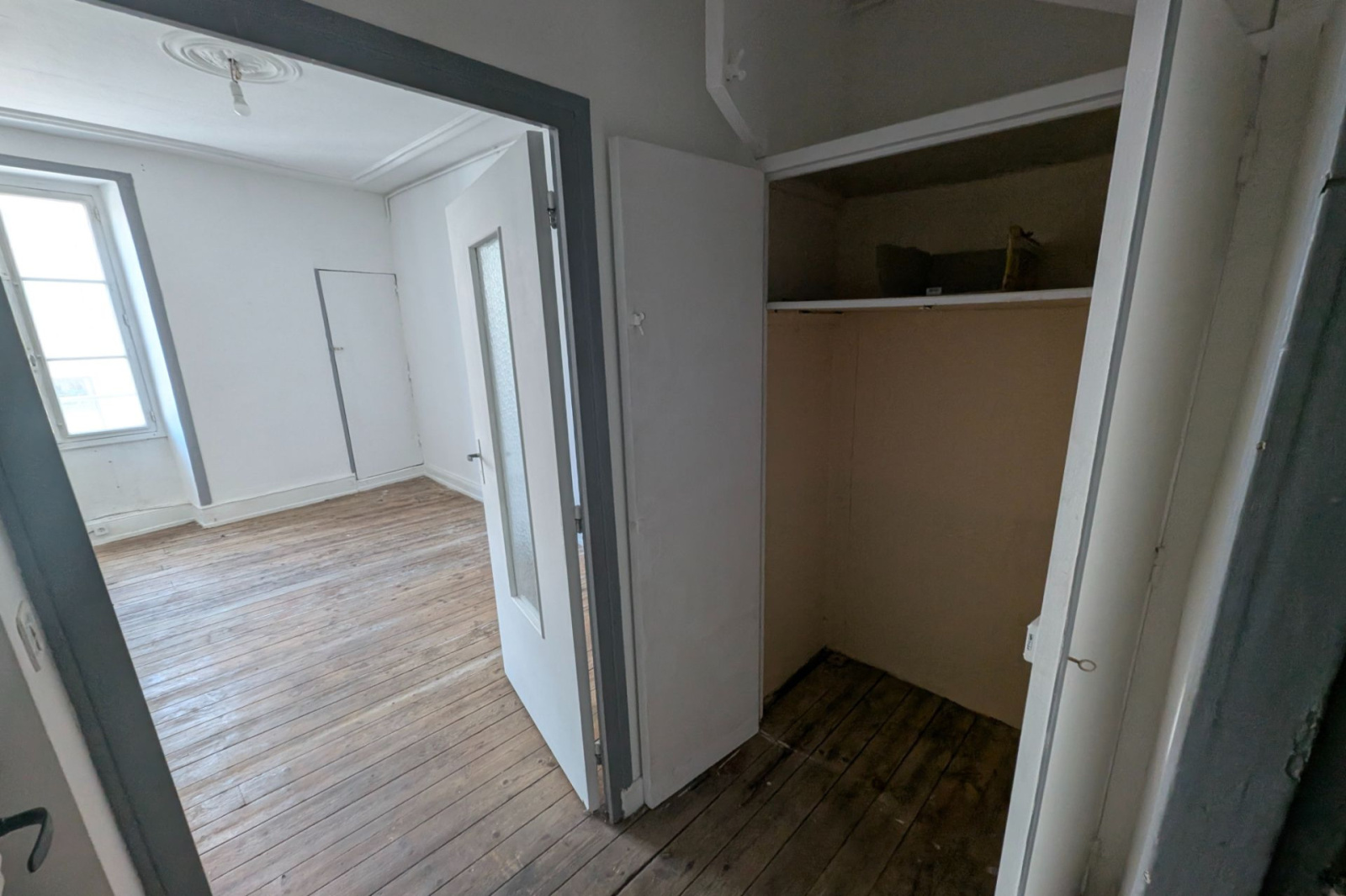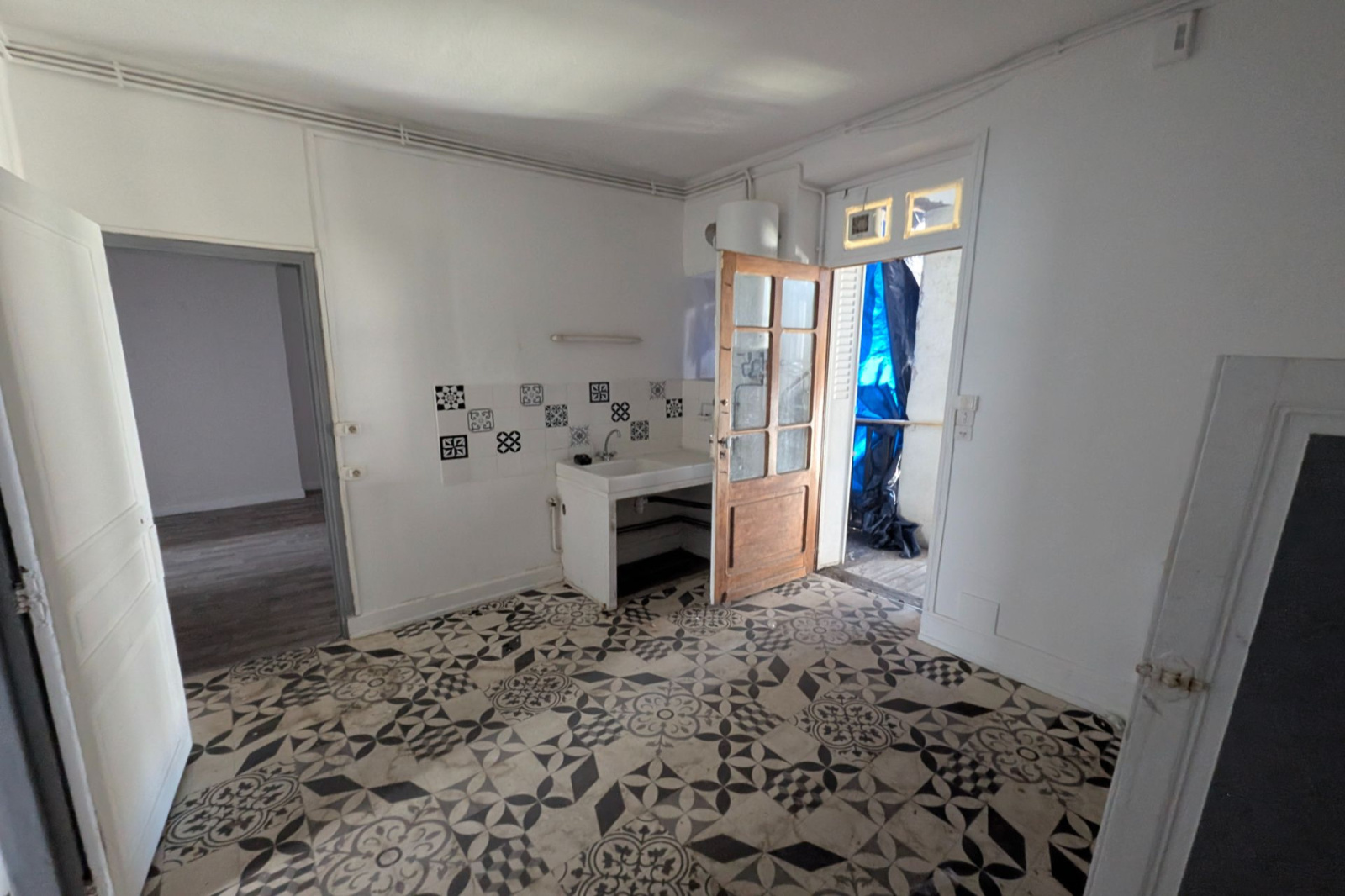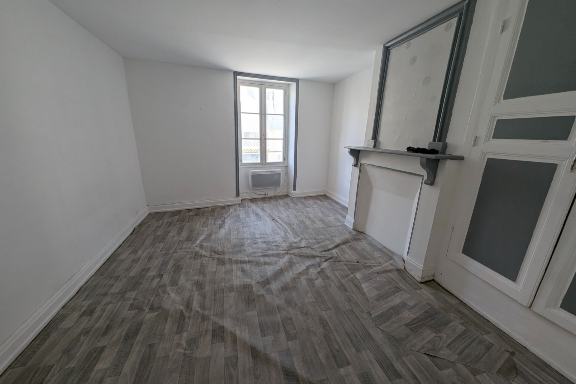 L'entièreté de l'appartement est à refaire néanmoins la porte d'entrée de l'appartement va être changée ainsi que le balcon qui sera restauré.