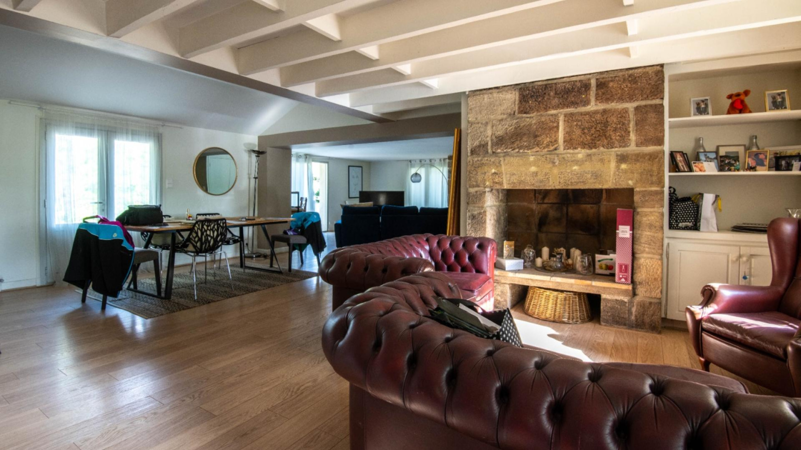 La maison distribue sur 207m² environ : en Rdc, grande pièce à vivre de 75m², cuisine indépendante ouverte sur le parc, salle de bains et wc, garage, buanderie. A l'étage 4 chambres dont 2 en suites, 1 salle de bains 2 salles d'eau.