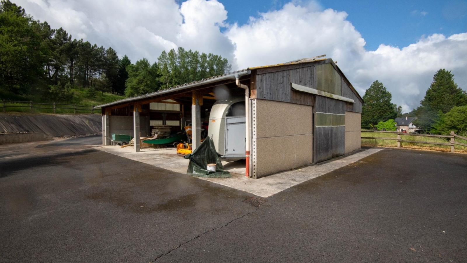1 hangar de 200 m² pour le stockage matériel. ( pouvant accueillir 10 box supplémentaires)