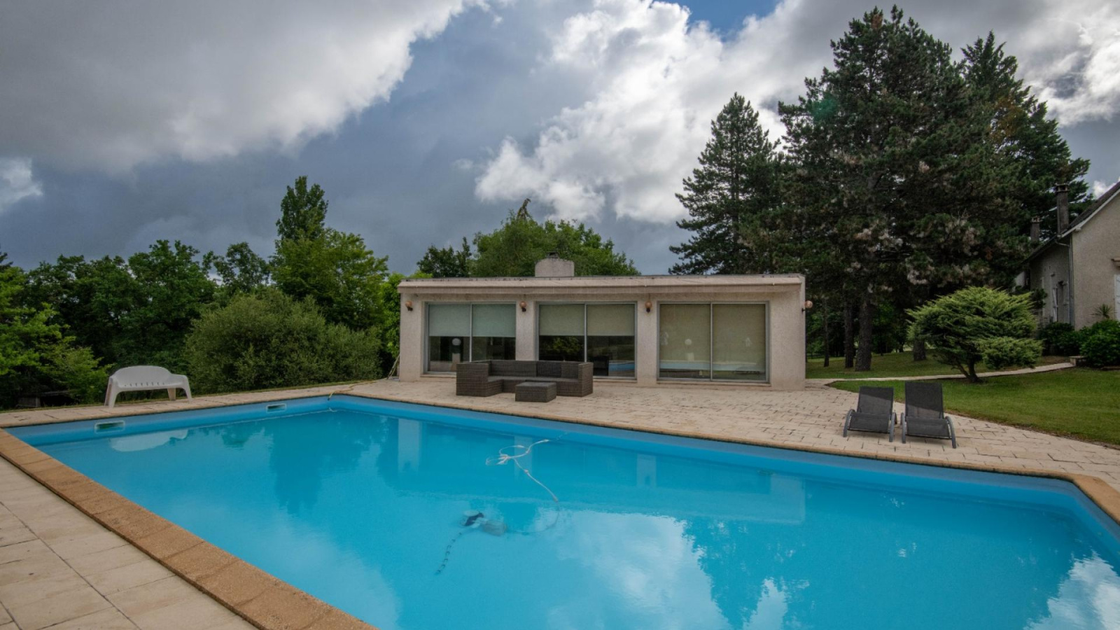 Pool house de 37 m² environ ( salle à manger, cuisine avec cheminée et BBQ, douche et wc)